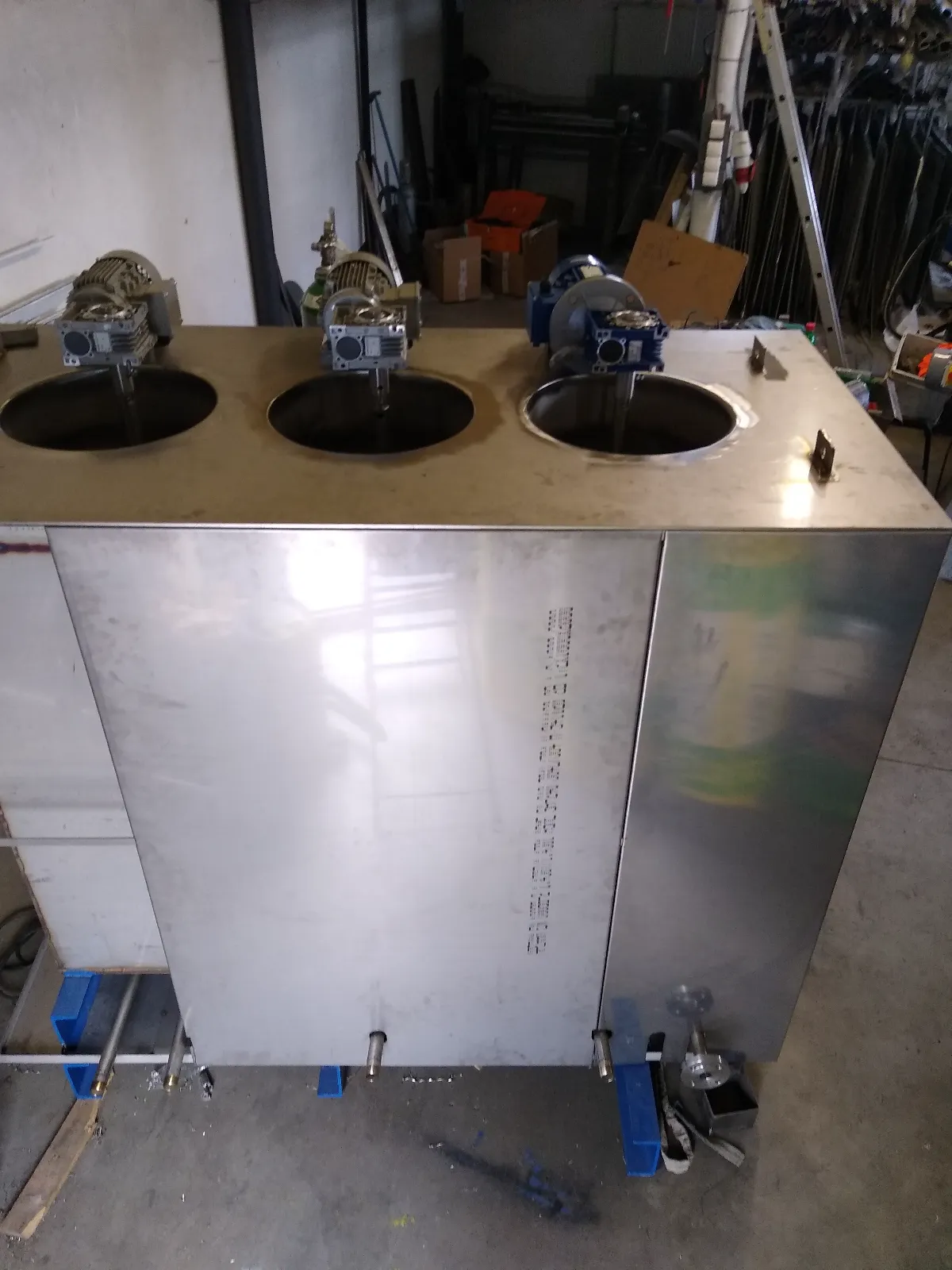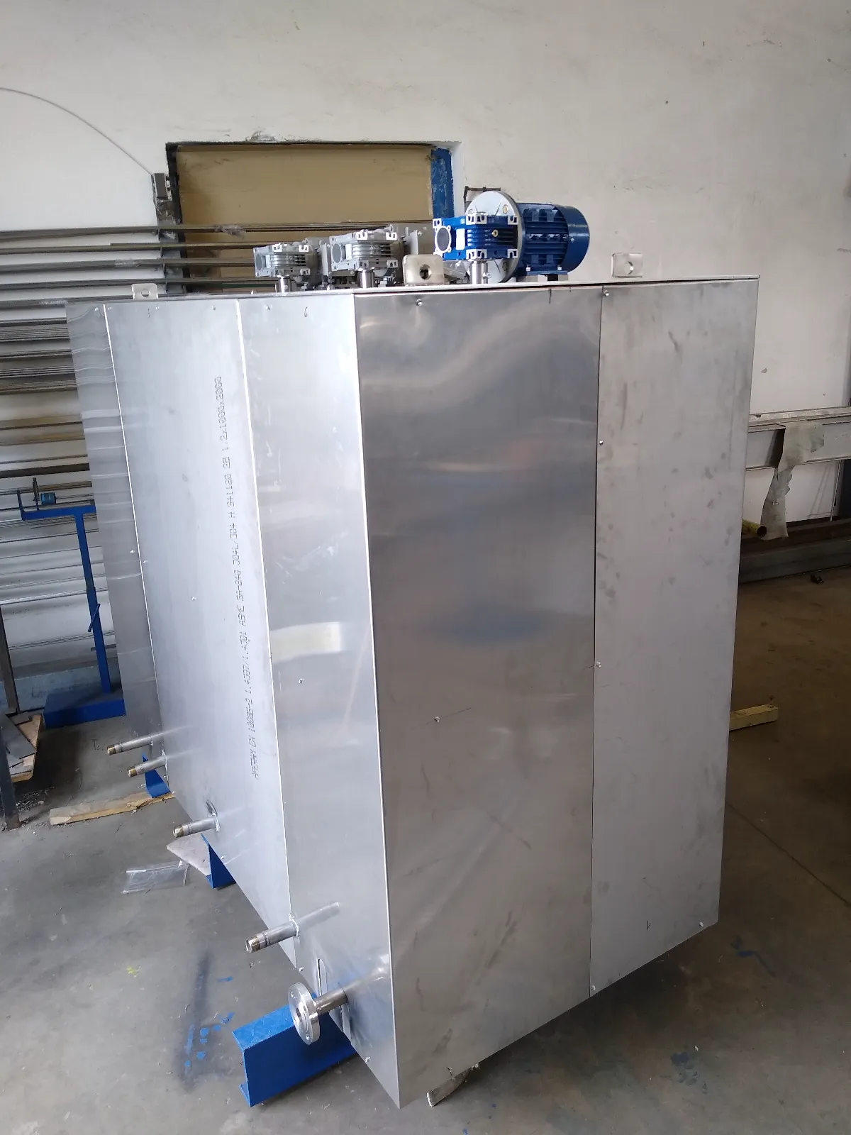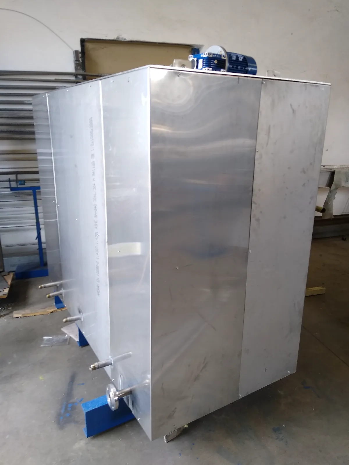 Tlakové alebo beztlakové tanky s kužeľovým dnom, chladiacim plášťom a teplotnými snímačmi. Povrch Ra ≤ 0,8 µm pre hygienické spoje. Štandardný objem 200–50 000 litrov.
