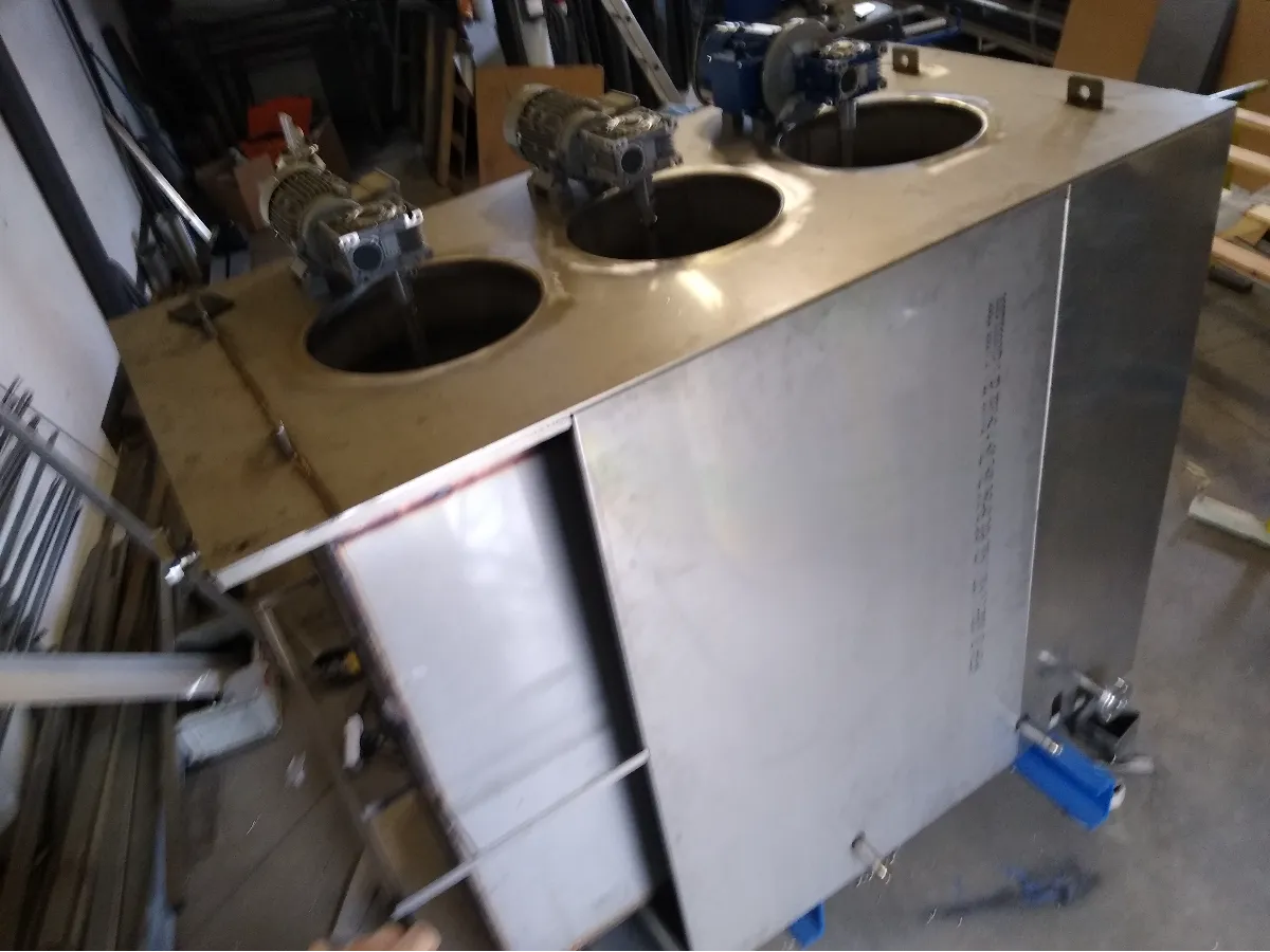 Varené pod tlakom, certifikované podľa PED (Pressure Equipment Directive). Materiál AISI 316L pre maximálnu odolnosť voči chloridom a kyselinám. Miešadlá, výhrevné plášte, CIP/SIP systémy na mieste.